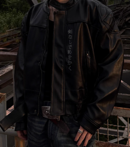 A statement piece from the “25SS Riot” capsule, the Midknight Syndicate jacket fuses dystopian luxury with armored street presence. Engineered for those who move in silence but command the room, it blends post industrial detailing with a structured, combat ready silhouette.