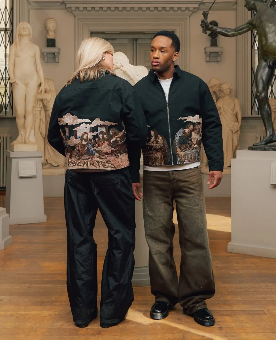 Make an unforgettable statement with this bold and artistic LAST SUPPER Embroidered Jacket. Inspired by Leonardo da Vinci's iconic painting, this jacket reimagines The Last Supper with a contemporary, streetwear twist.